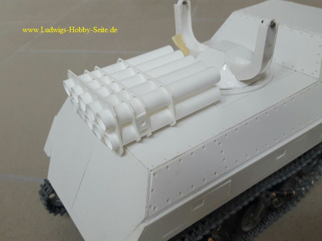 ![]() Der Panzerwerfer 42 oder in anderen Quellen Panzerwerfer 43 steht für Sd.Kfz. 4/1 und war ein selbstfahrender Mehrfachraketenwerfer der deutschen Wehrmacht ab 1943. Das nach seiner ursprünglichen Tarnbezeichnung auch „Nebelwerfer“ genannte Fahrzeug, bestand aus einem umgebauten Opel Maultier. ![]() Der Bausatz wurde von Bernd Eckelsbach entworfen, und steht nun in seinen einzelnen Komponenten zur verfügung.